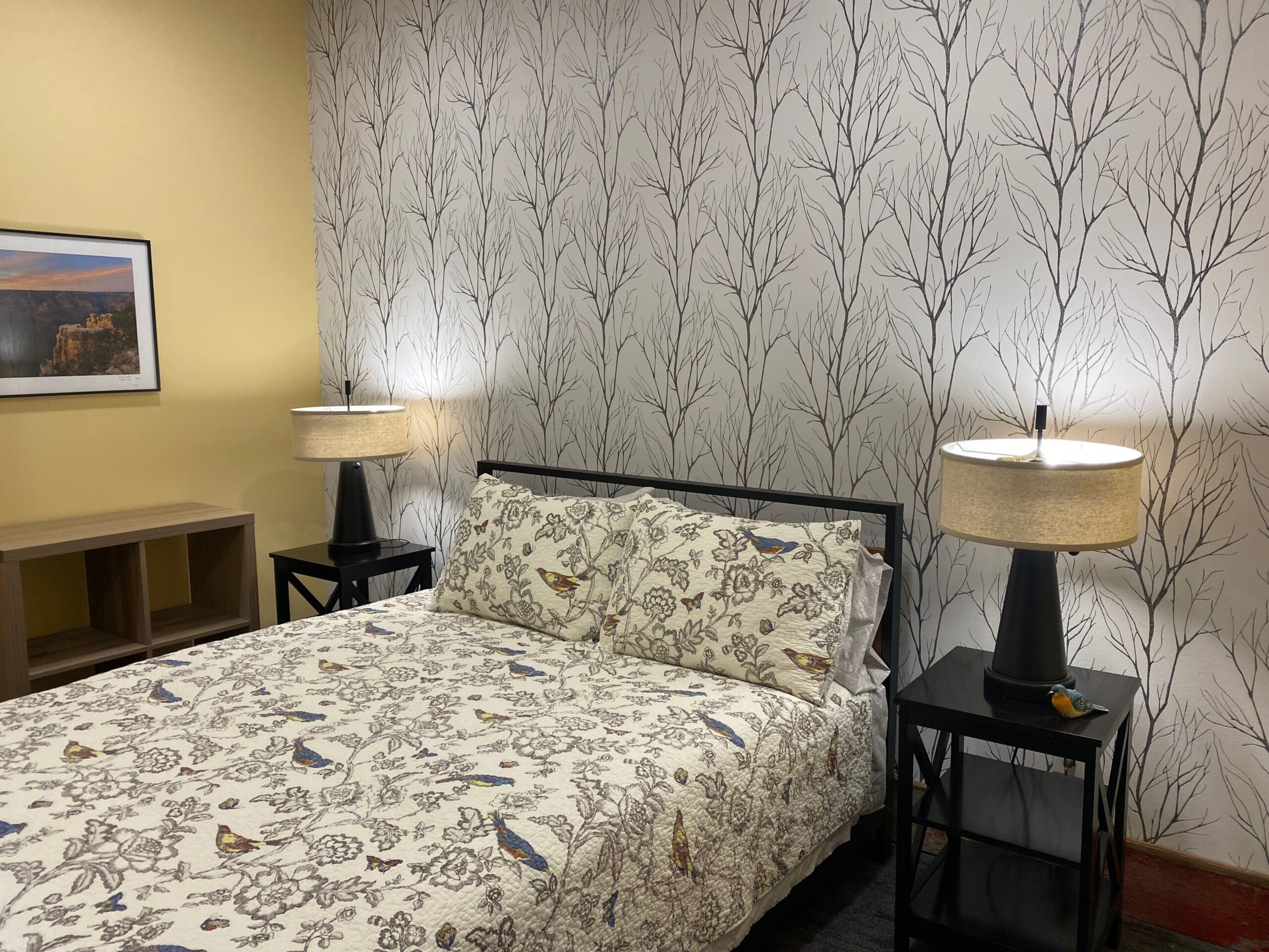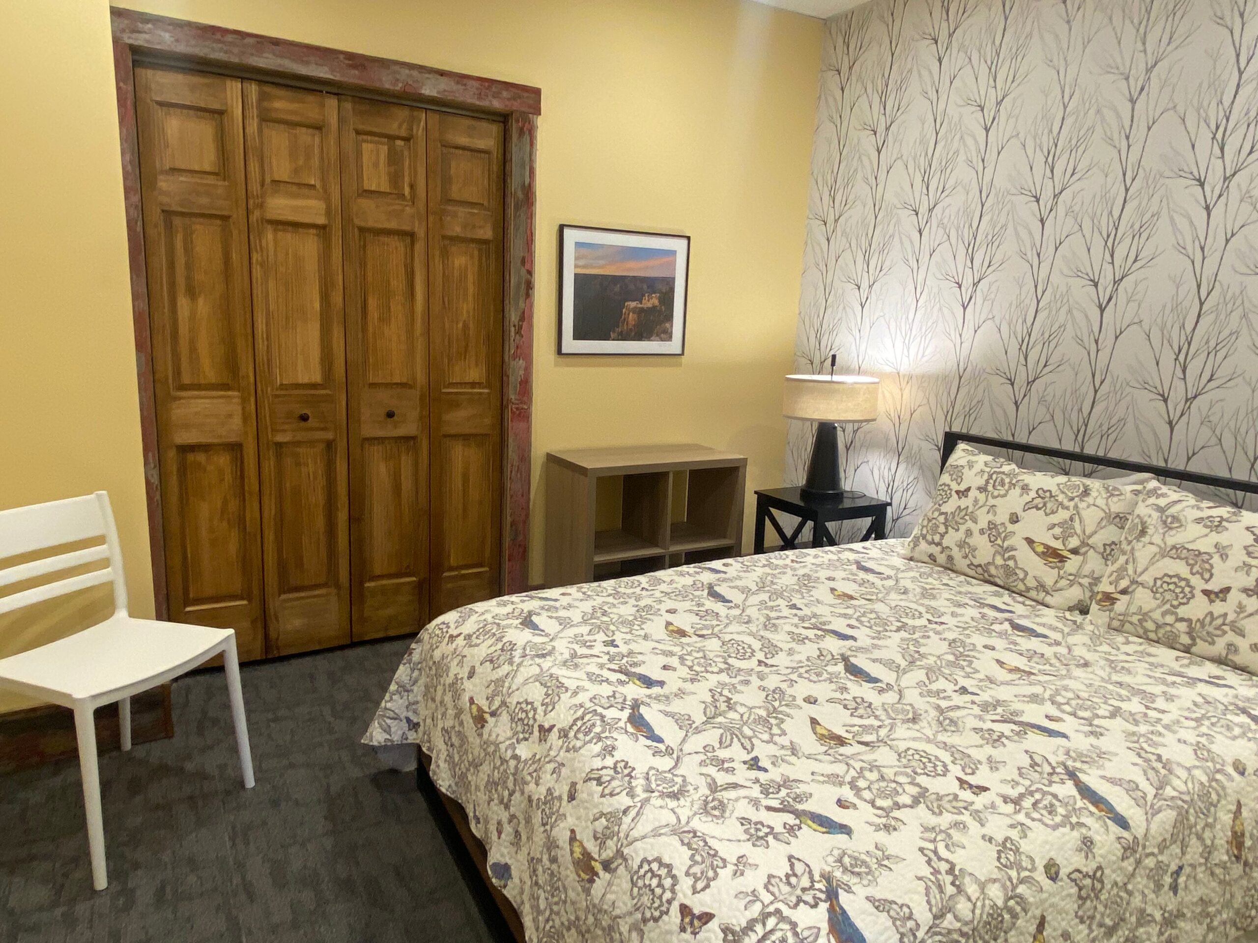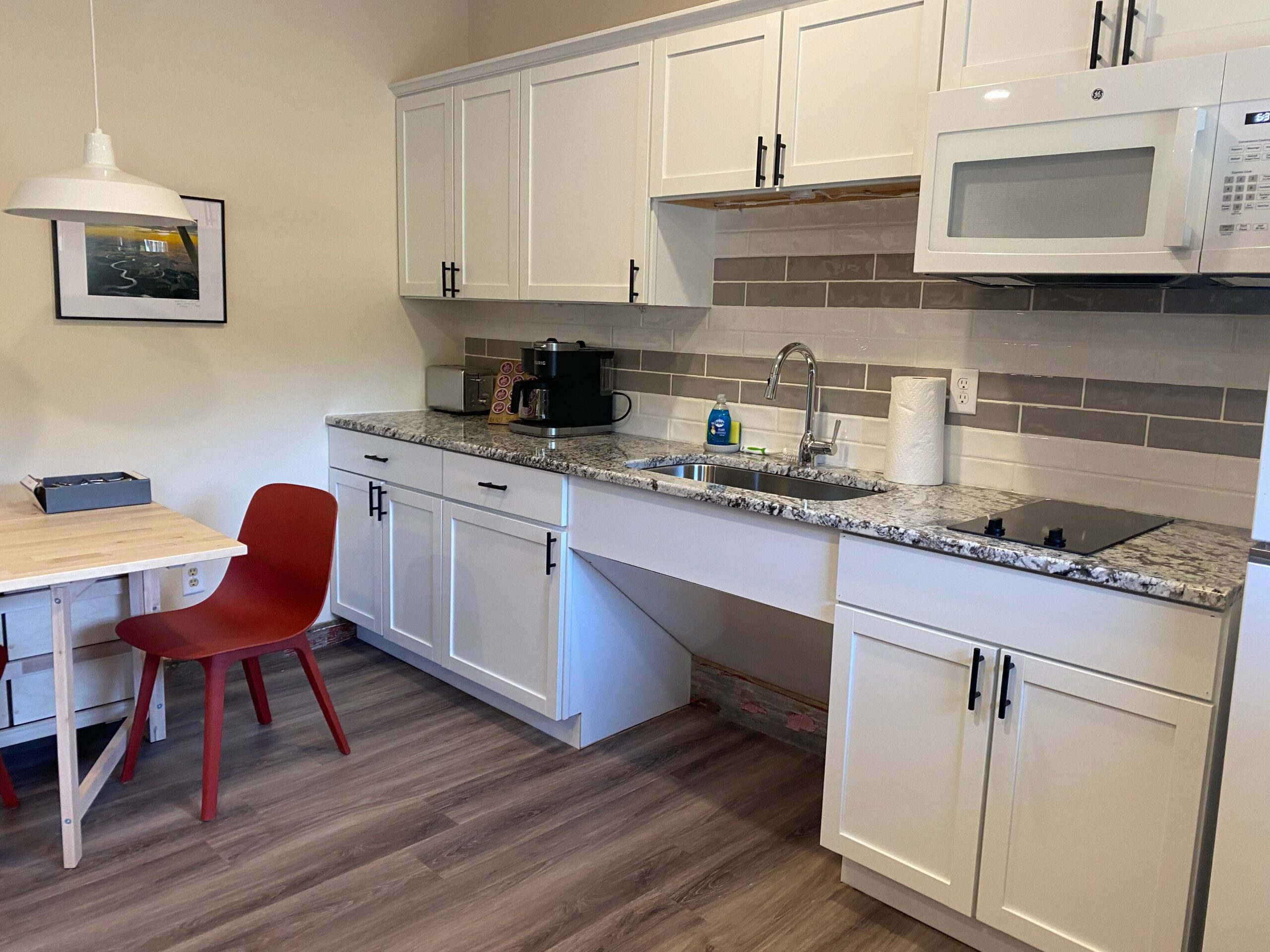 This fully appointed one-bedroom Suite is located at ground level – no stairs to climb here. It has a full kitchen, walk-in shower, and queen size bed. There is also a spacious living room. Parties traveling together may request shared access between Orchestra Level Suite B at the back of the building and Orchestra Level Suite A at the front. The building is also equipped with WiFi and Smart TVs.